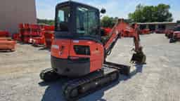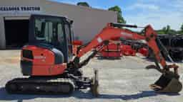 2014 Kubota U35-4R3A excavator with enclosed cab, A/C, heat, hydraulic angle blade, quick attach, two buckets, and a hydraulic thumb. Our shop just replaced four of the track rollers and one work light. Machine is ready to go.